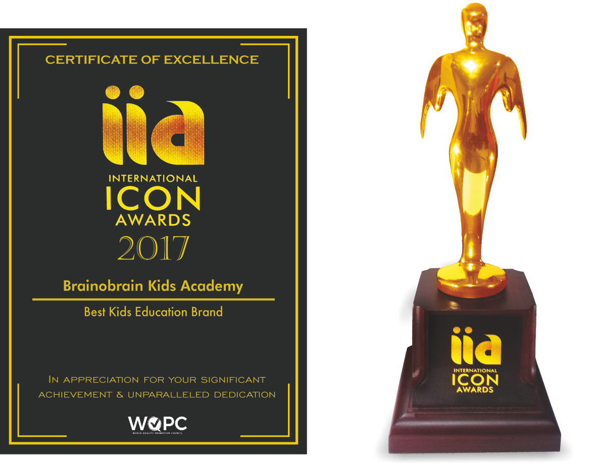 BRAINOBRAIN KIDS ACADEMY was conferred the International Icon Awards 2017 by World Quality Promotion Council. The award was under the category of Best Kids Education Brand. Brainobrain Directors received the award at an august ceremony held at New Delhi in December 2017.
